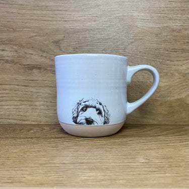 Contemporary two-tone stoneware mug, beautifully screen printed with an original hand drawn pencil design.