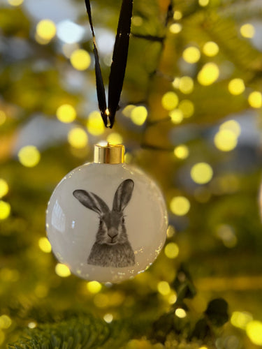 Beautiful & festive white Fine Bone China bauble with printed original pencil art character.