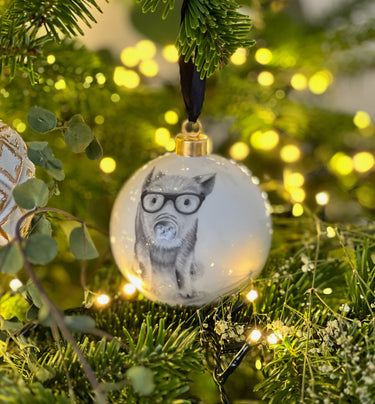 Preston Pig in Glasses Large Fine Bone China Bauble