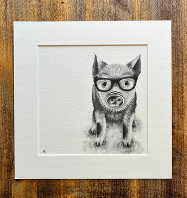 Preston Pig in Glasses Mounted Print